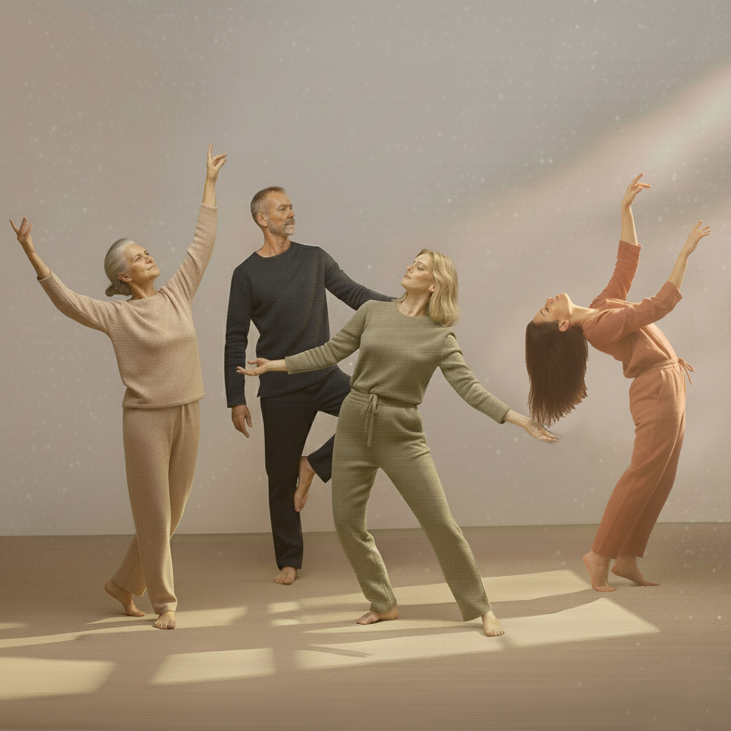 Zespół to również społeczność, która się akceptuje, bierze udział w dodatkowych stacjonarnych/wyjazdowych warsztatach tanecznych, rozmawia, śmieje się i organizuje wspólne spotkania integracyjne. Wspólne poruszanie się w jednym czasie i przestrzeni przyczynia się do identyfikacji z grupą. Zaangażowanie w synchroniczne poruszanie się z innymi uczestnikami pozwala na naukę nowych zachowań w ruchu i wchodzenia w nowe relacje. Dzięki temu tworzymy zgraną ekipę, pełną energii, pomysłów i chęci do wspólnego działania 😎